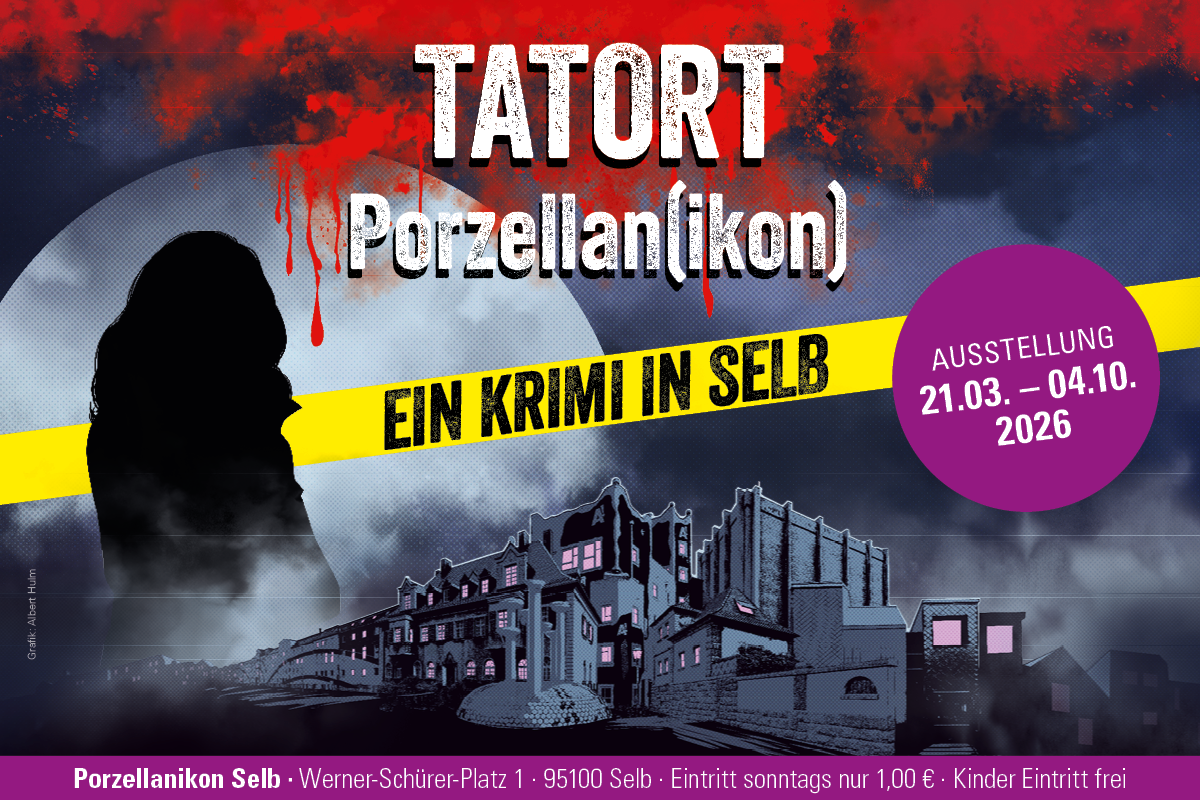 Kommen Sie ins Porzellanikon Selb und entdecken Sie Porzellan von seiner unerwarteten Seite! Die Sonderausstellung „Tatort Porzellan(ikon). Ein Krimi in Selb“ lädt Sie ein, hinter die glänzende und scheinbar unschuldige Fassade des „weißen Goldes“ zu blicken. Ermitteln Sie in einer Welt aus Eleganz und Luxus – und finden Sie heraus, welche Rolle Porzellan bei Verbrechen, Betrug, Industriespionage und spektakulären Kriminalfällen spielte.
